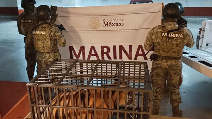 La Secretaría de Marina, en coordinación con la Fiscalía General de la República (FGR) y la Agencia de Investigación Criminal (AIC), aseguró un tigre de la especie Panthera Tigris en la colonia El Caloso. Durante el operativo también se detuvo a un hombre de nacionalidad extranjera, presunto infractor de la ley.