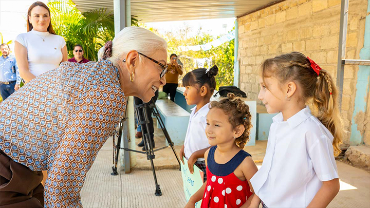 La presidenta del Sistema DIF Nayarit, Beatriz Estrada Martínez, inauguró la ampliación de la techumbre en el desayunador del preescolar Gregorio Torres Quintero, obra ejecutada por el gobierno estatal para mejorar las condiciones de alimentación y aprendizaje de los menores en esta comunidad rural.