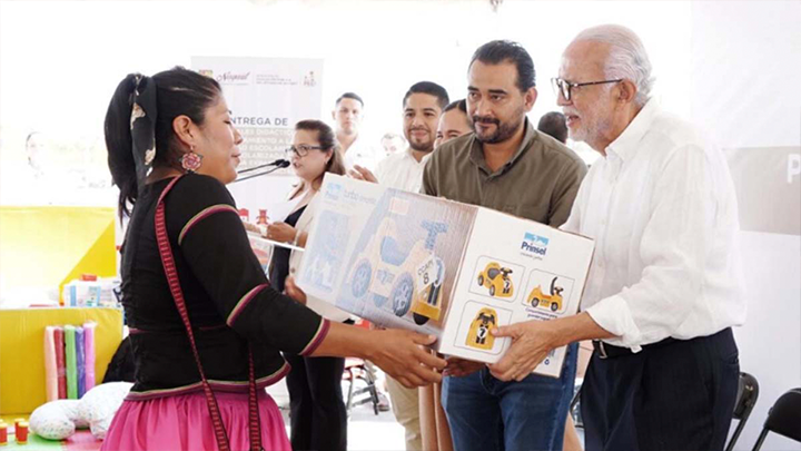 La entrega incluyó mil 200 pupitres, mil bancos, 150 computadoras, 50 impresoras multifuncionales y material deportivo, además de nuevo mobiliario escolar destinado al personal de los Centros de Atención a la Primera Infancia (CAPI) y a los agentes educativos que participan en la estrategia Visita a los Hogares.