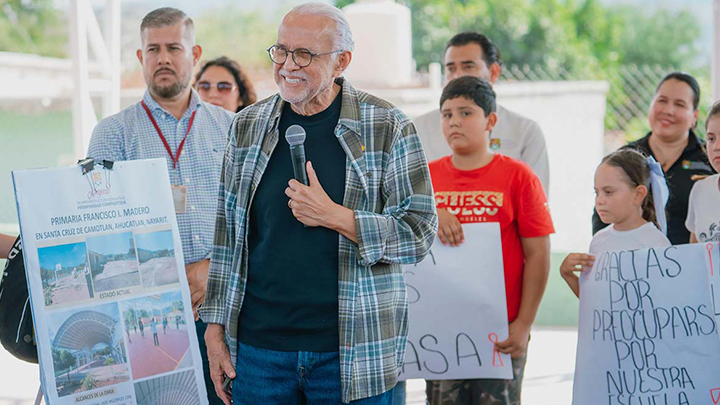 El gobernador Miguel Ángel Navarro encabezó la gira de trabajo y validó también infraestructura educativa. En la primaria Francisco I. Madero entregó un domo valuado en 2.4 millones de pesos, subrayando que el gasto público se está alineando con necesidades funcionales y no estéticas.