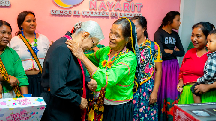 Fue en las instalaciones del Corazón de Nayarit, donde la titular de la asistencia social refrendó su respaldo a las mujeres de grupos originarios que, con esfuerzo y dedicación, preservan la identidad cultural de Nayarit a través de la elaboración de prendas artesanales; además, reafirmó su compromiso y el de su esposo, el gobernador del estado, Miguel Ángel Navarro Quintero, de entregar apoyos que fortalezcan la economía y bienestar de las familias.