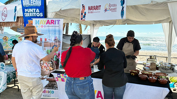 El icónico pescado zarandeado nayarita fue protagonista del festival, deleitando a los asistentes con su inconfundible sabor, acompañado de vinos y cervezas artesanales elaborados por productores locales de alta calidad. Entre los productos que representaron a Nayarit destacaron el vino Meseta del Cielo, el tequila Real Ixtlán, la cerveza Samao y las tradicionales salsas Aticama, que reflejan la esencia y diversidad de la región.