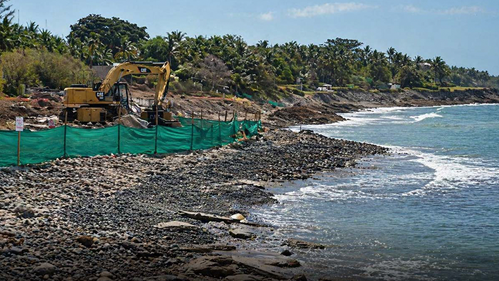 La obra, impulsada por la empresa DINE a través de su filial Cantiles de Mita, consiste en un muro de enrocamiento para contener la erosión costera. Aunque cuenta con dictámenes favorables de SEMARNAT y PROFEPA, habitantes y colectivos ambientales cuestionan la validez de estas autorizaciones y advierten que el proyecto podría agravar la pérdida de playa y limitar el acceso público a un espacio federal.