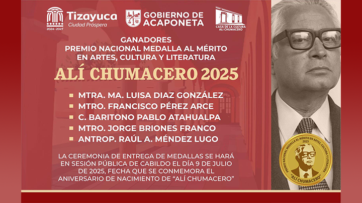 La entrega de estas medallas representa un homenaje al legado de Alí Chumacero, poeta e intelectual originario de Acaponeta, y reafirma el compromiso del municipio por posicionarse como referente cultural a nivel nacional.
